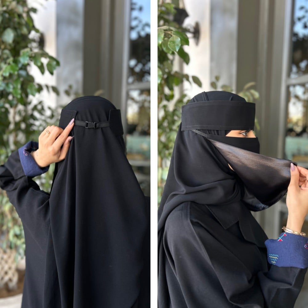 نقاب مشبك مبطن حرير قصير