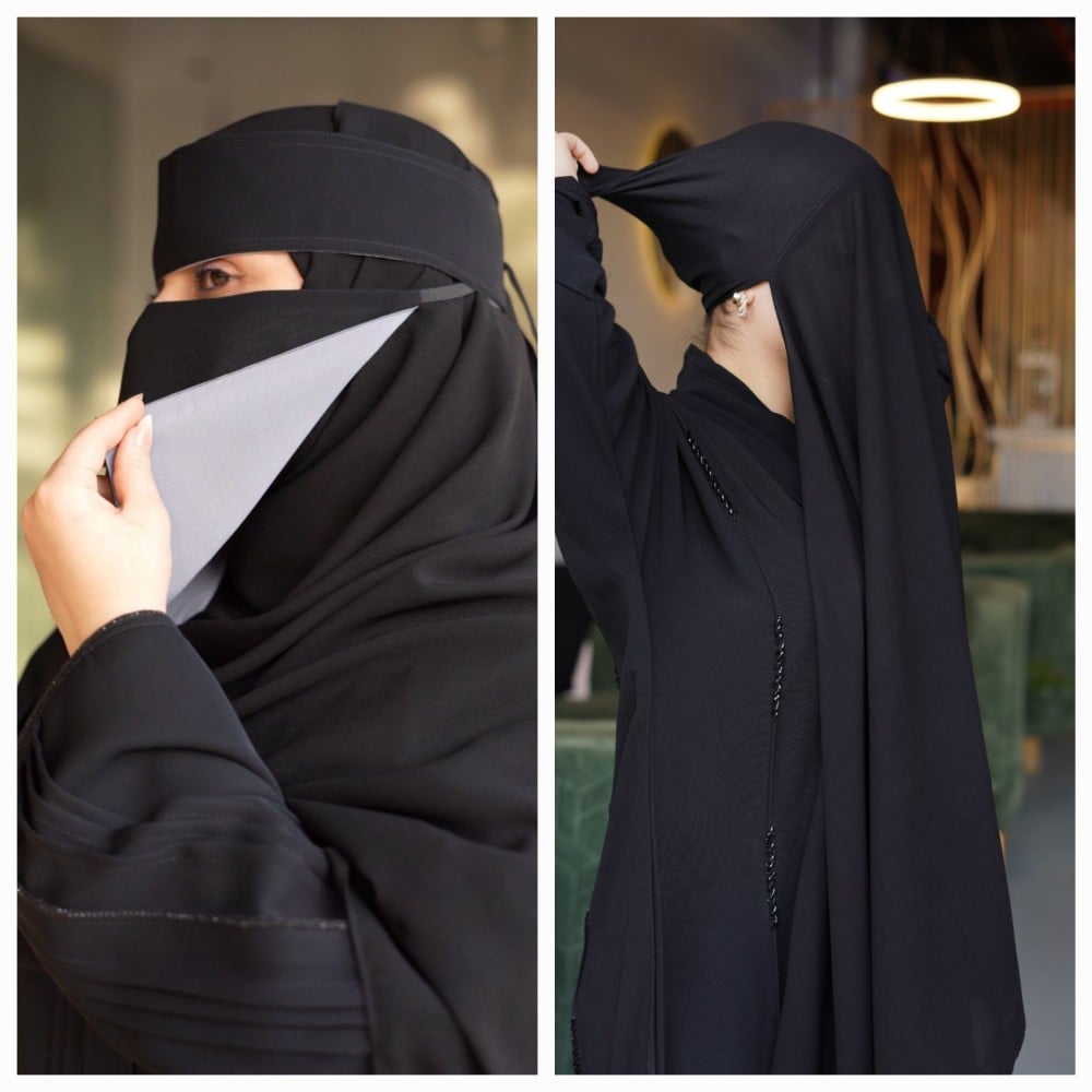 نقاب مبطن رمادي فايح قصير + طرحة بندانة